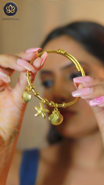 Chic cable bangle bracelet adorned with polished sea-inspired charms, including shells and a starfish, for an elegant beachy statement.